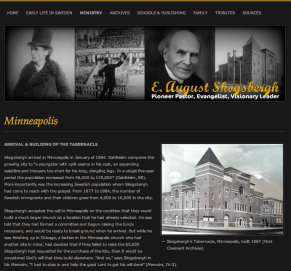 It is with great excitement that I share the fruit of my research and labor pertaining to the life and legacy of E. Aug. Skogsbergh – early pioneer leader and revivalist preacher of the Covenant Church who had a powerful ministry in Minneapolis and on Lake Minnetonka in my backyard. Building this website has been both the most fun as well as the most time-consuming research project I have undertaken. My research inv