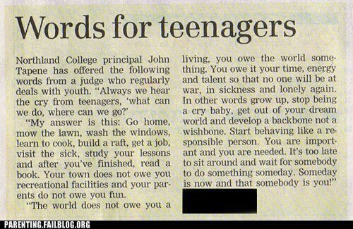 Certainly his words apply to some teenagers — namely, privileged kids who grew up like me, blessed with an intact family and an actual yard to mow who waste their lives away. But that’s not the family background that many troubled youth who stand in juvenile court come from.