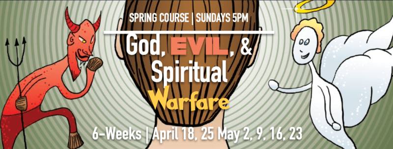 We are thrilled to gather together in-person again at St. Martin’s beginning this Sunday at 5pm for a 6-week Bible course “God, Evil, & Spiritual Warfare” I will be teaching. We will explore the theme of spiritual warfare through both the Old and New Testaments. We will look at the ministry of Jesus through the lenses of two kingdoms in conflict. We’ll get to know our Enemy and his schemes with an overview of Satan and demons. We’ll explore the 3 main battlefronts where the war is either won or lost.