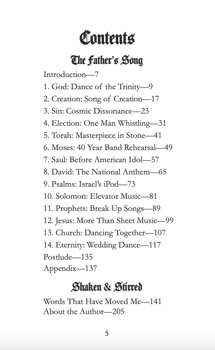 For the past 20 years, I have been a pastor and Bible teacher whose primary passion is finding new and compelling ways to tell this Story, and inviting others to find their place in the action. In this little book, The Father’s Song, I combine my passion for the Bible with my love of music. One divine melody permeates the grand narrative of Scripture. In this creative overview of the Bible, we will train our “ears to hear” the penetrating God-beat at the center of redemption history.