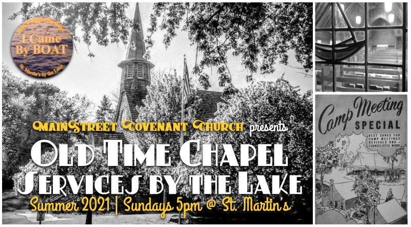 Sharing the historic 1888 chapel with St. Martin’s has meant moving MainStreet’s Sunday gatherings to 5PM. As more people get vaccinated, MainStreet is excited to finally invite the community to come out to the lake and visit them in their new place. This summer’s services have a vintage “Old Time Summer Camp” feel featuring campy songs and fun for the family.