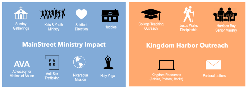 Summer has faded in the rear view, replaced by the fresh rhythms and possibilities of a new season. A few highlights to celebrate with friends and financial supporters. Speaking of support, a reminder that I am in a new season of raising my own salary like an overseas missionary to continue leading MainStreet Covenant and all of our outreach ministries. Please consider becoming a monthly supporter of all of our ministries seen in the graphic below. Learn more here.