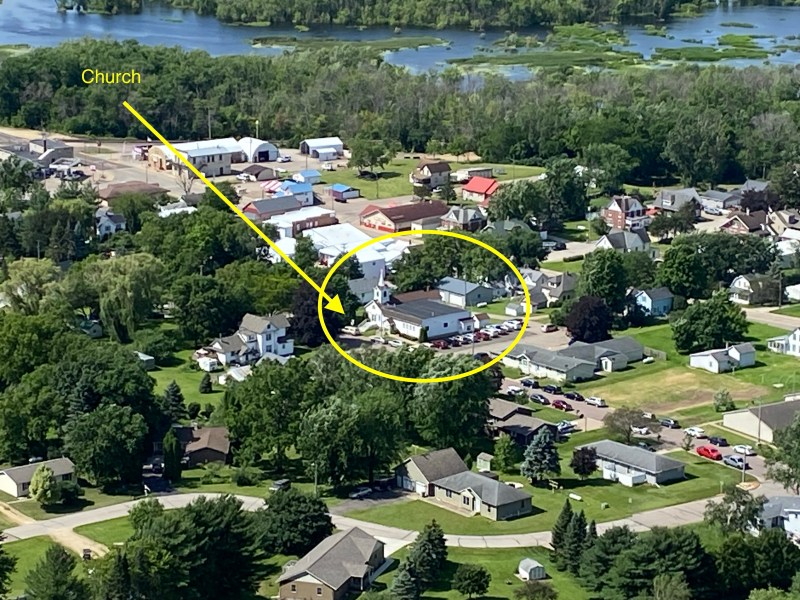 Second, my eyes scanned the rest of the little town and took note of other business and activity underway. I saw a couple little dots walking behind smaller furry dots down the street. A man at a stand selling fireworks for the 4th of July. A farmer on a large tractor trying to contend with his drowning field. The most noticeable part of town from that height is the trailer campground shaped like a giant question mark.
