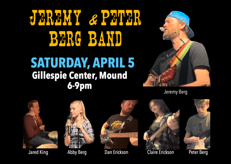 My buddy Dan Erickson is a fellow Mound Westonka grad, and solid bassist who was also in a band back in the day. Dan’s daughter, Claire, is tag-teaming on the bass and adding her beautiful voice to a couple songs including the Bob Dylan song Adele made famous, “To Make You Feel My Love.”