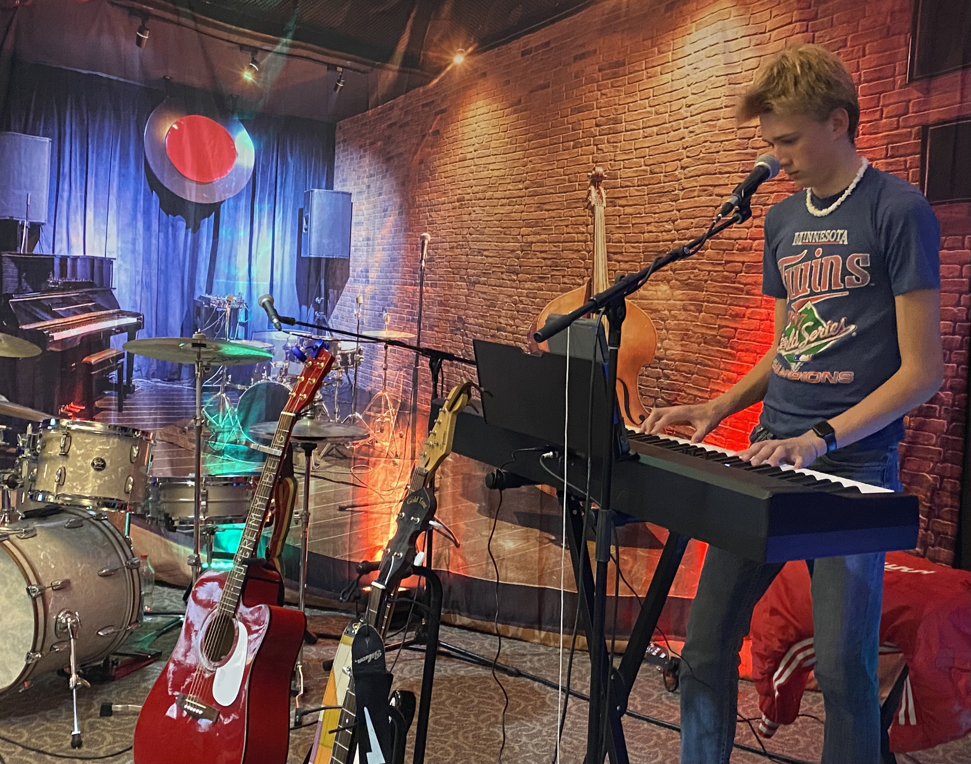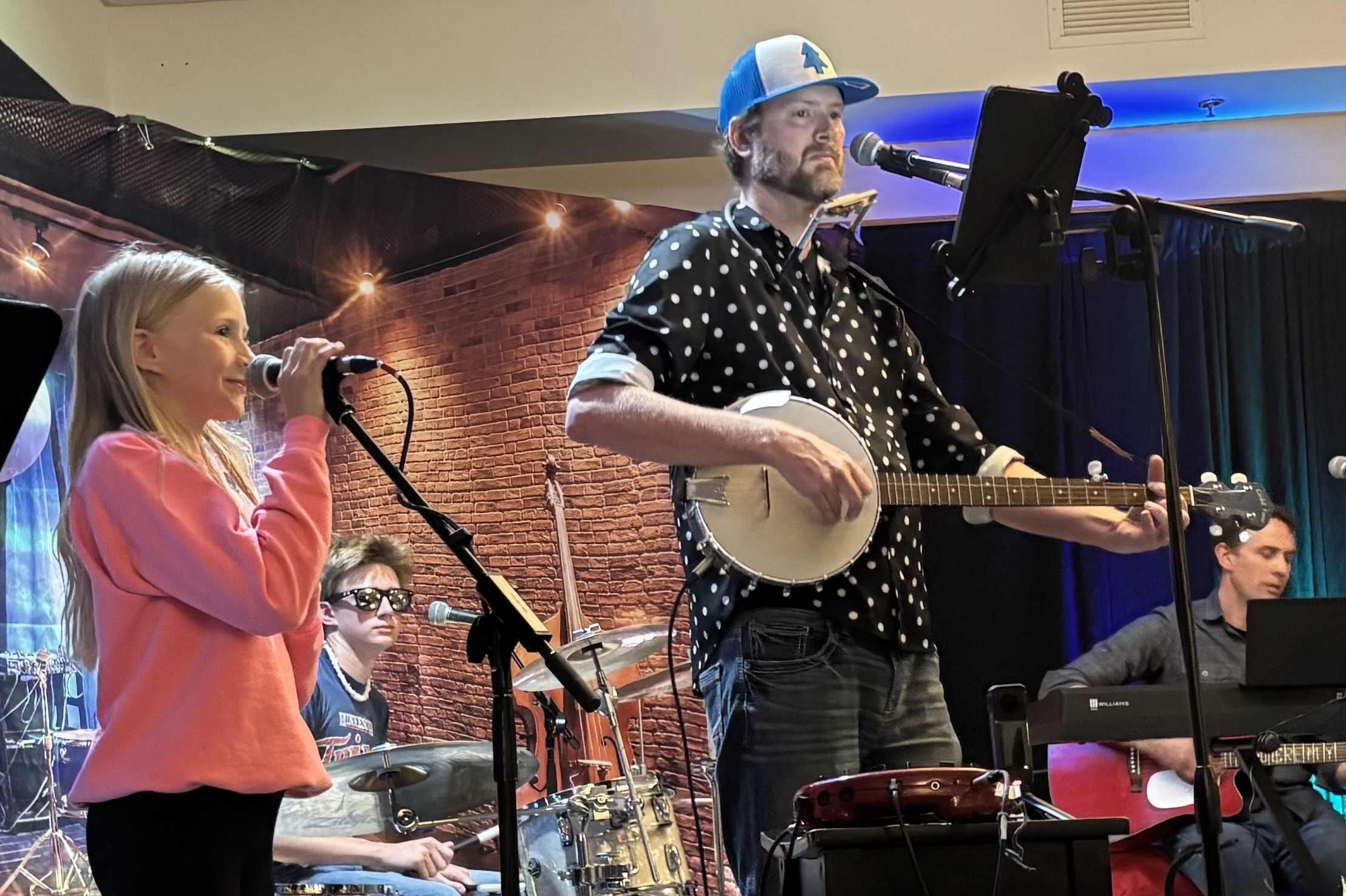 Watch the father-daughter Erickson duo taking turns on the bass guitar in the video. Claire is phenomenal — singing and on bass. Jared is so solid and chill and versatile on the drums. I have no limit to the pride and gushing amazement I have for Abby and Peter’s giftedness and courage to get up in front of a crowd at their age.